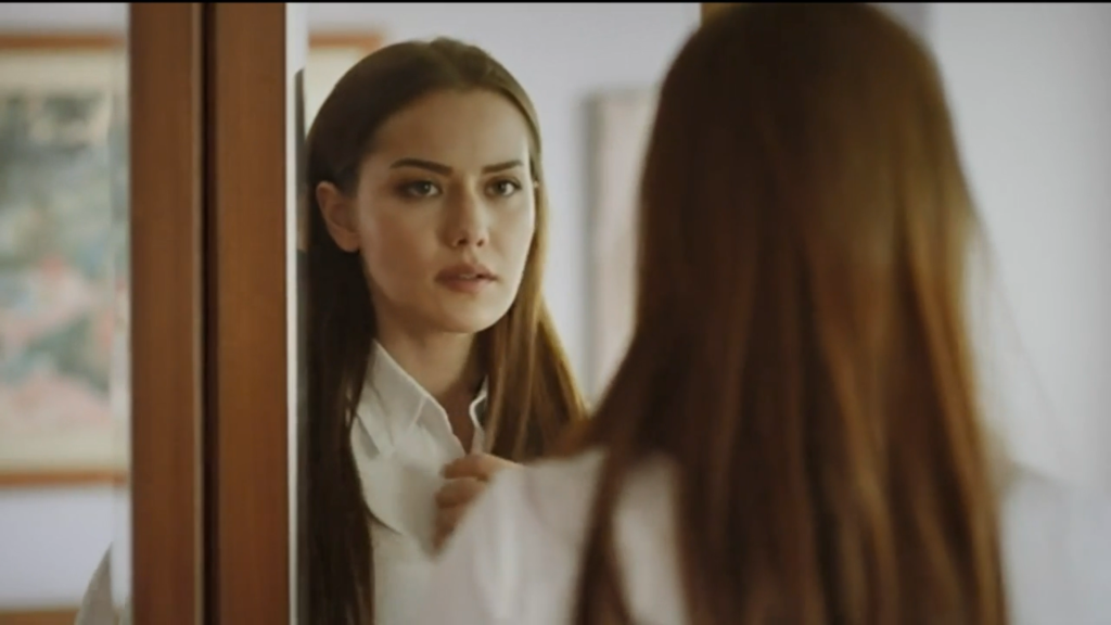 Dağhan s’habille pour se rendre au tribunal, costume, cravate, chemise blanche, cheveux coiffés. Selvi fait la même chose chez elle, tailleur strict, cheveux lissés en arrière ramassés dans un chignon, chemisier blanc, chaussures fines, allure parfaite pour se préparer à être une avocate convaincante.